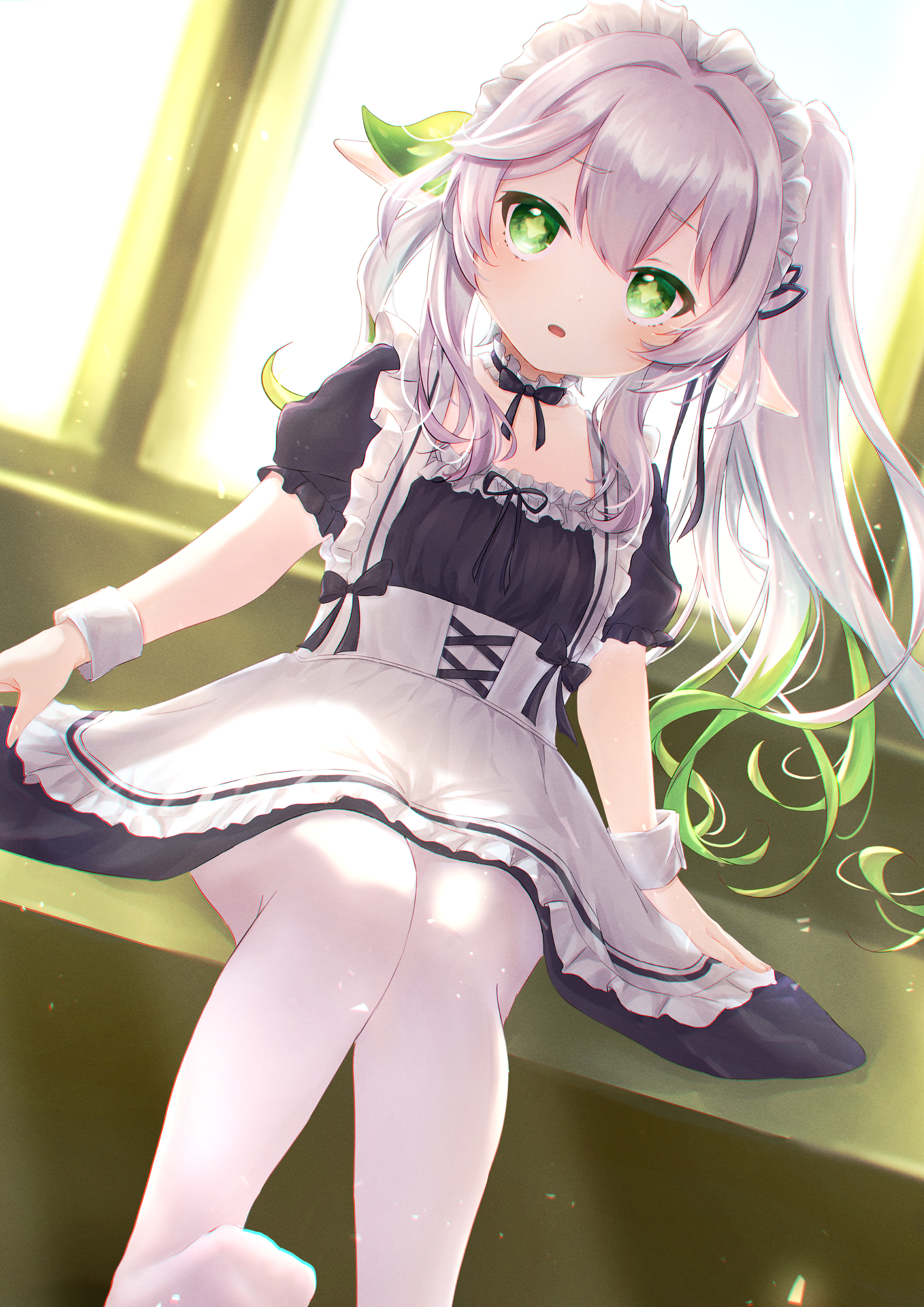 纳西妲 原神 绿色眼睛 白发 女仆装