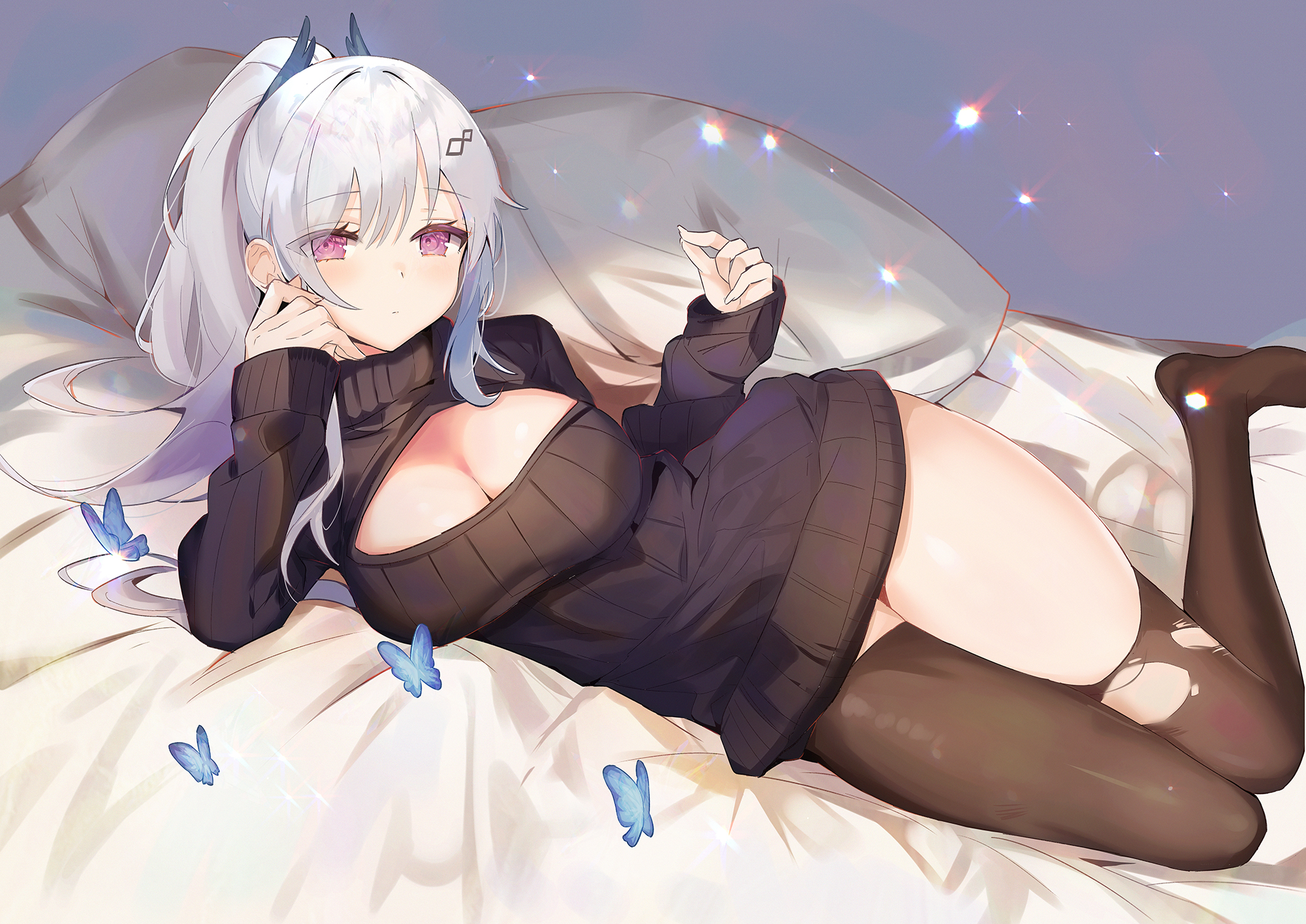 Pid:105543662艾莉丝 幻塔 白发 红眼睛 黑丝