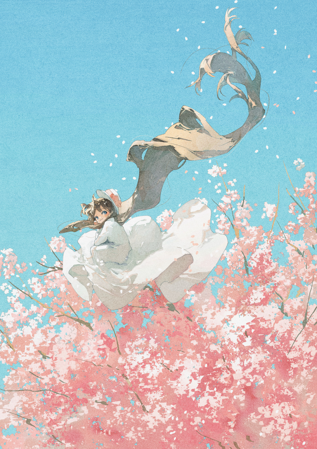 女孩子 花和女孩子 白色连衣裙 樱