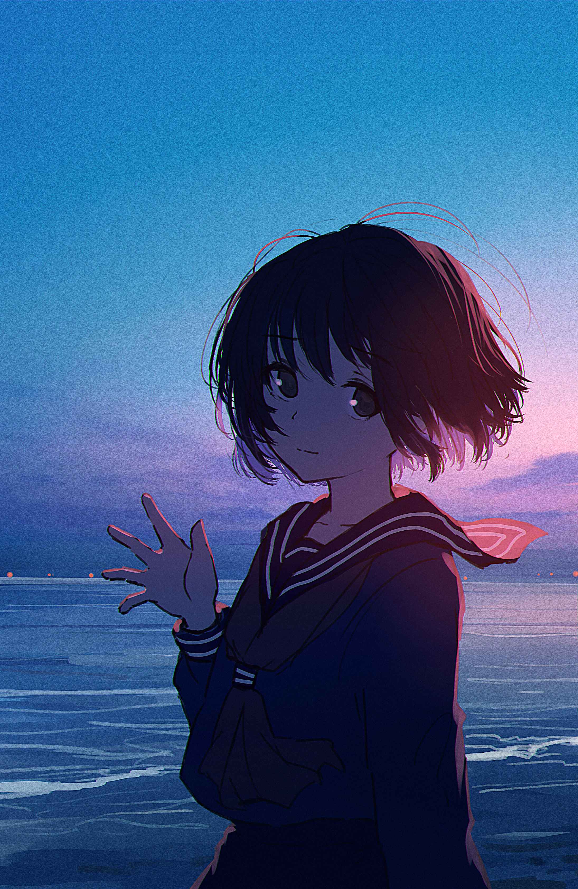 女孩子 风景 一小时绘画决斗 水手服 波波头
